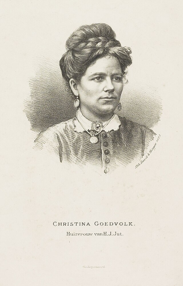 In 1872 leerde de inmiddels 25-jarige Christina in Den Haag de vier jaar jongere Hendrik Jacobus – Henri – Jut kennen. Hij werkte als ober in het voorname Groot Stedelijk Badhuis in Scheveningen, op de plek waar nu het Kurhaus staat. Jut verdiende er als ober tijdens het badseizoen een schamel inkomen; zij was een dienstbode, eveneens met magere verdiensten. Ze werkte bij de welgestelde weduwe Maximiliana van der Kouwe-Ten Cate.